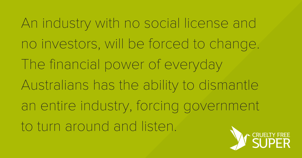 An industry with no social license and no investors, will be forced to change. The financial power of everyday Australians has the ability to dismantle an entire industry, forcing government to turn around and listen.
