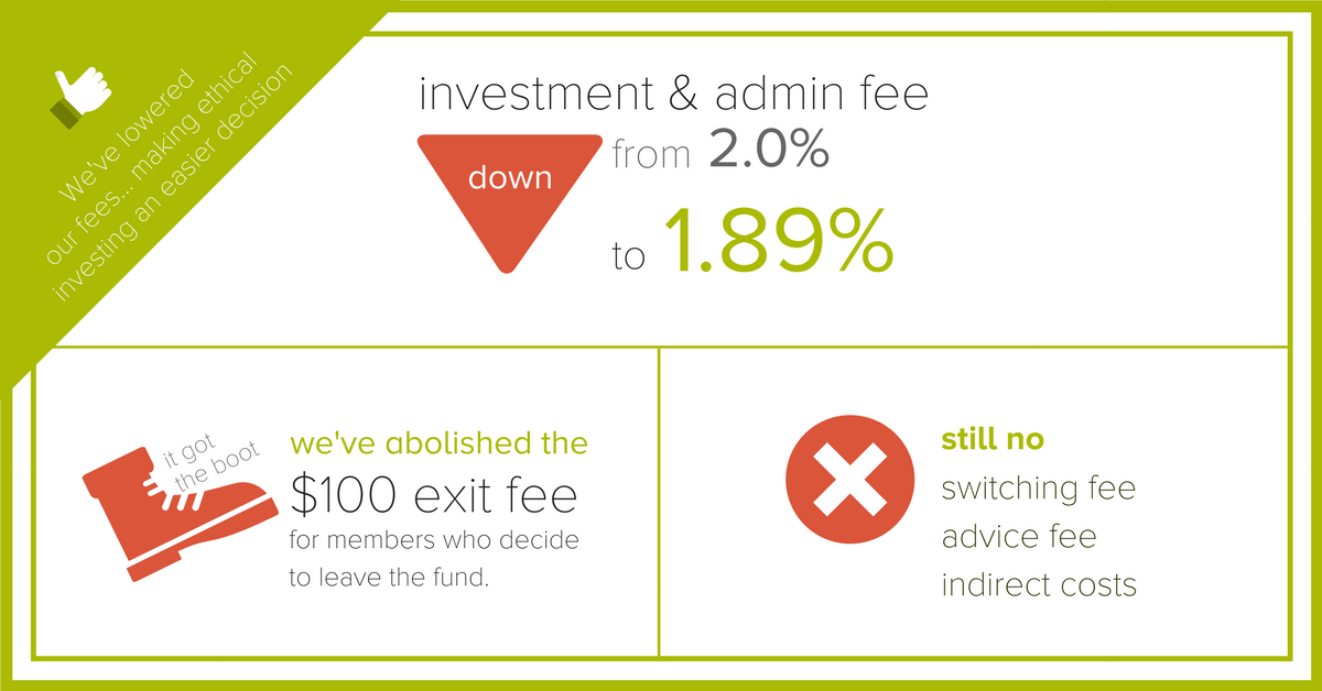 Our investment and administration fee has been reduced from 2% to 1.89%. This doesn’t sound like much in percentage points, but for someone with a $50,000 balance, that’s a saving of $55 every year. We’ve also eliminated our exit fees.